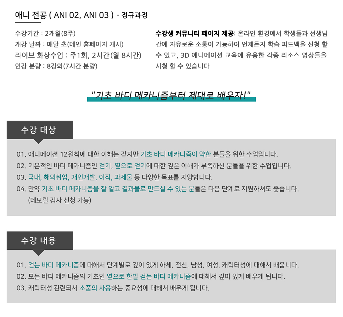 정규)애니 전공과정 (ANI 2, ANI 3)